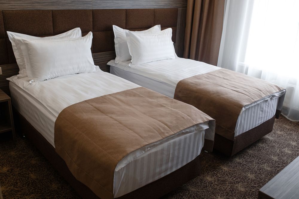 - двуспальная кровать размером 1,8 х 2 м, которая при необходимости трансформируется в две раздельные кровати размером 0,9 х 2м; все кровати комплектуются соответствующими гостиничным стандартам ортопедическими матрасами, четырьмя гипоаллергенными подушками (двумя мягкими и двумя жесткими) и постельным бельем из 100% хлопка;