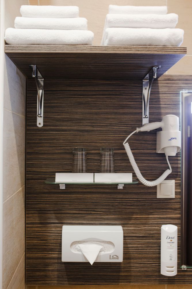 - ванная комната, оборудованная душем размером 1,2 х 0,8 м, туалетом с гигиеническим душем. Имеется фен, зубной набор, шампунь/гель для душа и крем-мыло профессиональной линии Dove.